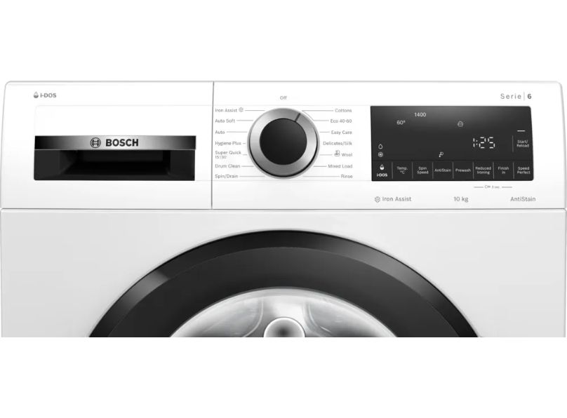Washing your clothes is made simple with the Bosch WGG254F0GB Series 6 Freestanding 10 Kg Washing Machine 1400Rpm Spin. Wash your clothes up to 65% faster by combining SpeedPerfect with your favourite wash cycle. Eliminate 99.99% of bacteria from your clothes with the Hygiene Plus Cycle, and smooth out creases with the Iron Assist Cycle. Plus, the Anti Stain cycle makes light work of up to 16 stubborn stains.