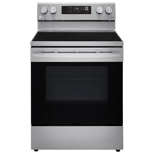 Enjoy a versatile appliance in the kitchen with this 6.3 cu. ft., 30-inch electric range from LG. A convection fan ensures even results, and the air fry function lets you eat fries, wings and more guilt-free. SmartThinQ technology lets you control the range from your smartphone for maximum convenience.